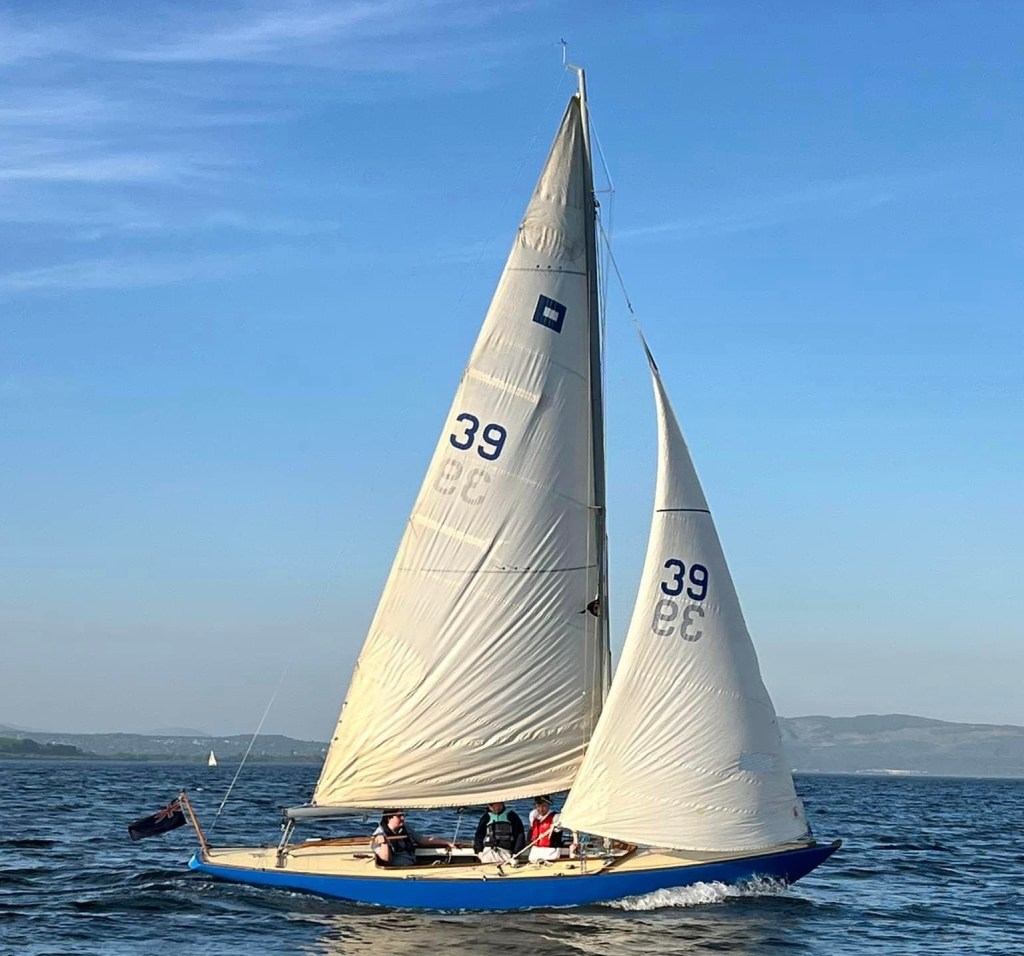 The Pipers are Clyde born and bred, designed by David Boyd of Robertson’s yard in Sandbank, just across the river from the Club, and fitted out there. You can spot their bright hulls on the moorings in front of the Club and under sail.