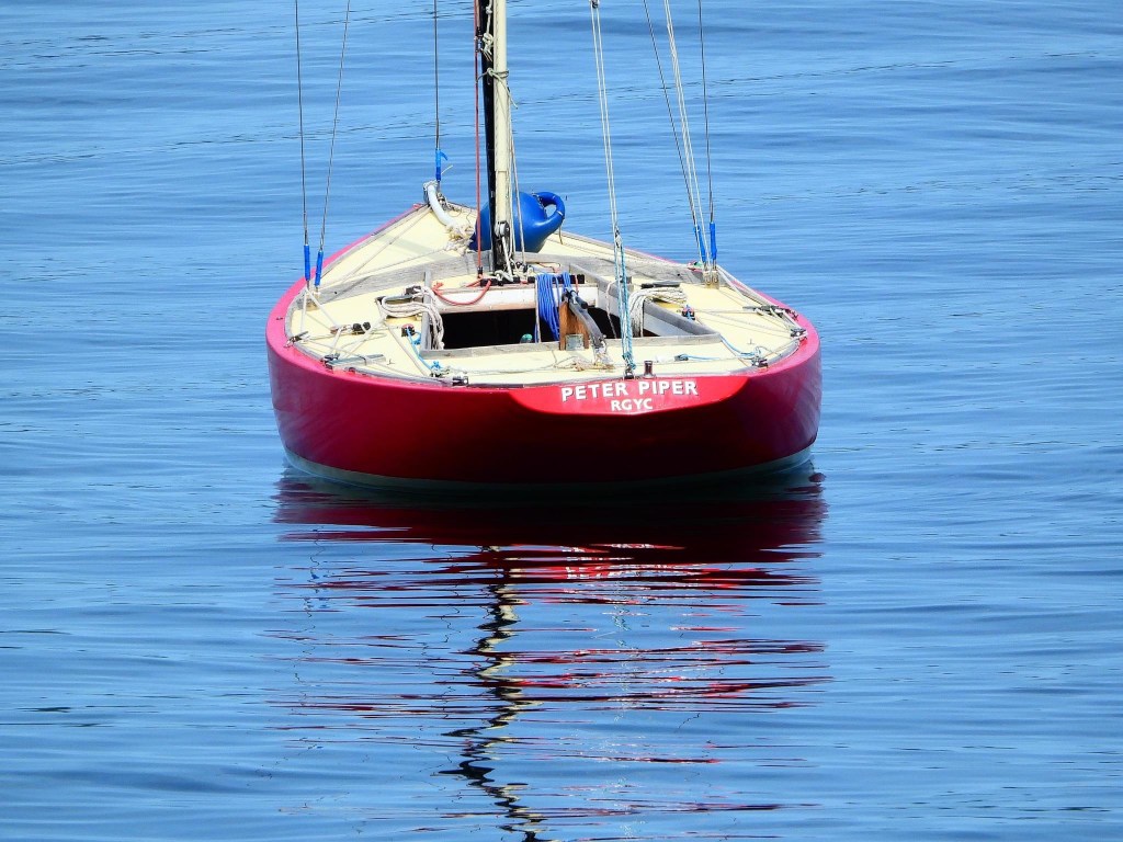 Built in 1967 Peter Piper, sail number 2, was sailed on the Clyde until 1985. A move down south and a name change to Solitaire ensued and she was sailed on the river Tamar which separates Devon and Cornwall. Laid up for three years she was revitalised and her name changed back to Peter Piper. Now on the moorings at Gourock, Peter Piper’s bright red hull is clearly visible from a distance.